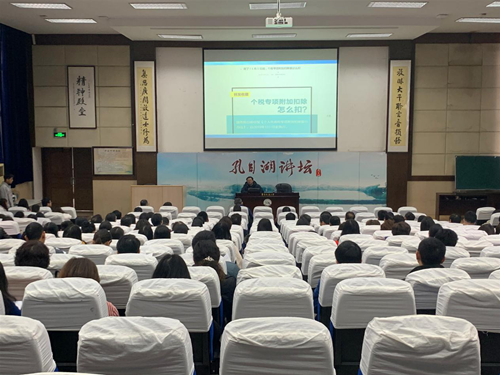 稅務專家圍繞2019年1月1日之后個人所得稅計算方法和辦稅流程等方面內容,重點對新個稅實施后六項專項附加扣除、高校教職工勞務報酬收入、稿酬收入如何預扣預繳個稅、全面一次性獎金如何計稅等方面進行了講解,輔以生動事例,并進行現場解答。此次講座不僅宣傳了政策,梳理了辦稅流程,而且提高了教職工對新個稅的知曉度,對有效貫徹執行依法納稅起到了積極作用。