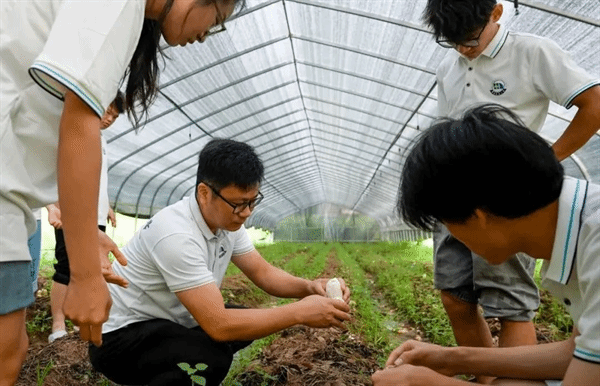 駐村干部帶領(lǐng)“火車頭”大思政實(shí)踐隊(duì)成員在竹蓀大棚進(jìn)行采摘作業(yè)