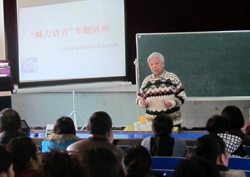 3月12日,江西省話劇團著名表演藝術家湯頤齡,受華東交大附屬學校邀請,在附校報告廳為附屬中小學、幼兒園全體教師做“魅力語言”的專題講座。 這位82歲德高望重的老藝術家畢業于上海戲劇學院,她從事話劇舞...